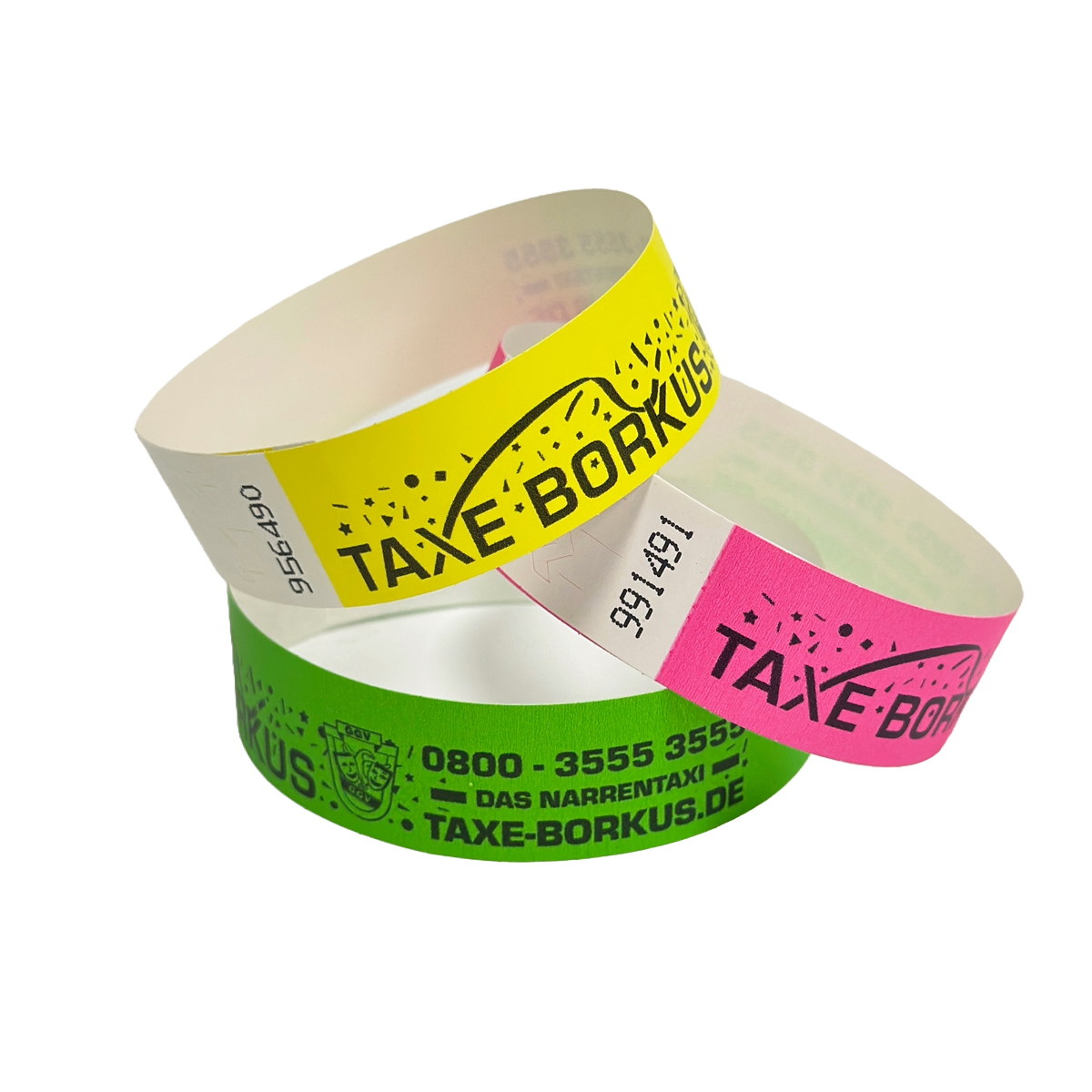 Einweg-Papierarmbänder mit schwarzem Aufdruck sind ein unverzichtbares Element für ein sicheres und kontrolliertes Eventmanagement. Ob für Besuchergruppen, Altersverifikation oder personalisierte Zutrittsbereiche – mit farblich sortierten Papierbändern behalten Sie jederzeit den Überblick. Die Cinta® Premium Kontrollbänder lassen sich schnell anlegen, sind nicht übertragbar und tragen so effektiv zur Sicherheit Ihrer Veranstaltung bei.